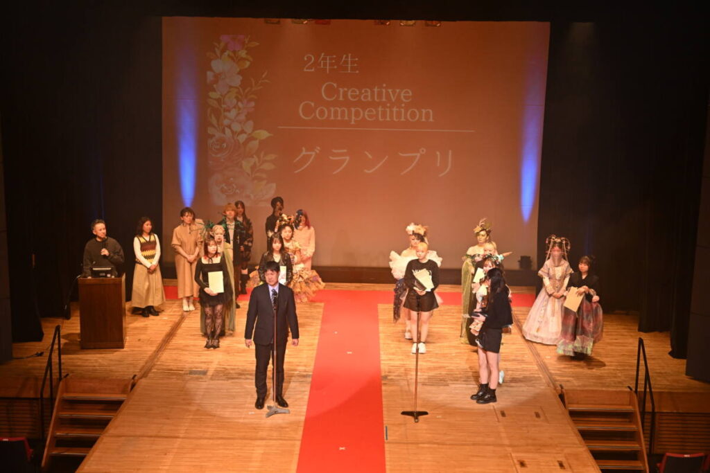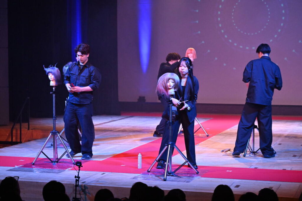 1年⽣デザインアワードのステージは、「ウェディング部⾨」「ウィッグカット部⾨」「トータルクリエイティブ部⾨」合計3部⾨のグループ作品を披露しました。